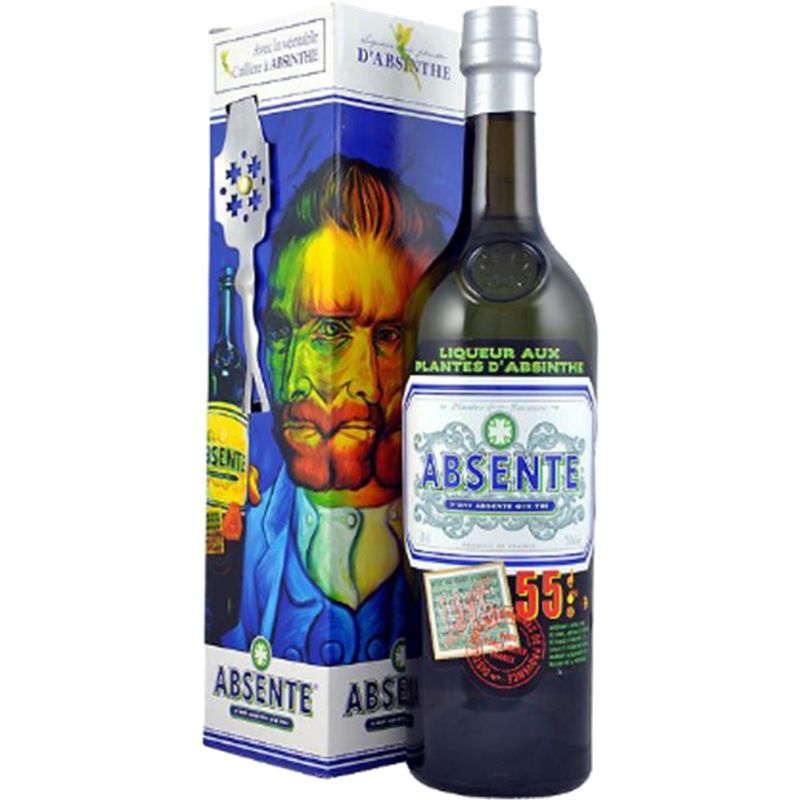 La absenta, es una bebida espirituosa cuyo origen es bastante incierto, se cree que la receta fue descubierta por un doctor francés que vivía en Suiza. Se vendía como un elixir y así es como se dio a conocer: los pintores románticos, impresionistas y escritores lo estuvieron utilizando durante décadas, y a día de hoy, las destilerías los homenajean diseñando estuches variopintos. En este caso se homenajea a Van Gogh, esta edición incluye una cucharita para su preparación (cuyo siseño puede variar)