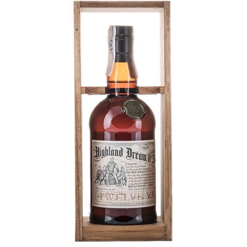 Highland Dream 12 años es un reserva compuesto por la mezcla de whiskies entre 12 y 14 años de añejamiento en barricas de Jerez y Bourbon. Es un whisky magnífico, en él se puede detectar la turba y el humo de los maltas de la costa Oeste, así como unos toques ligeros a miel, fruta y vainilla.