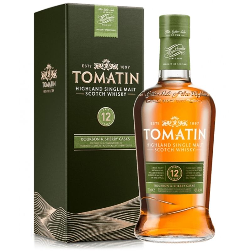 Destilado por Tomatin Distillery en Reino Unido. Tomatin 12 años se lanzó al mercado en 2004, y es la expresión de entrada a la destilería. Se ha envejecido en barricas de jerez español y bourbon durante 12 años.